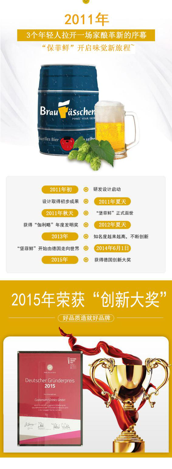 堡菲鲜是市面上唯一的一款免煮的可以DIY且7天内能成酒的啤酒,其工艺是最先进的,到目前为止没有人能仿制。